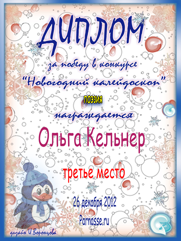 Диплом победителя в конкурсе "Новогодний калейдоскоп!"