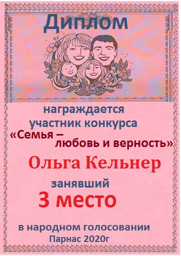 Диплом за 1 место в праздничном конкурсе "Поздравим Парнас с трёхлетием вместе!"