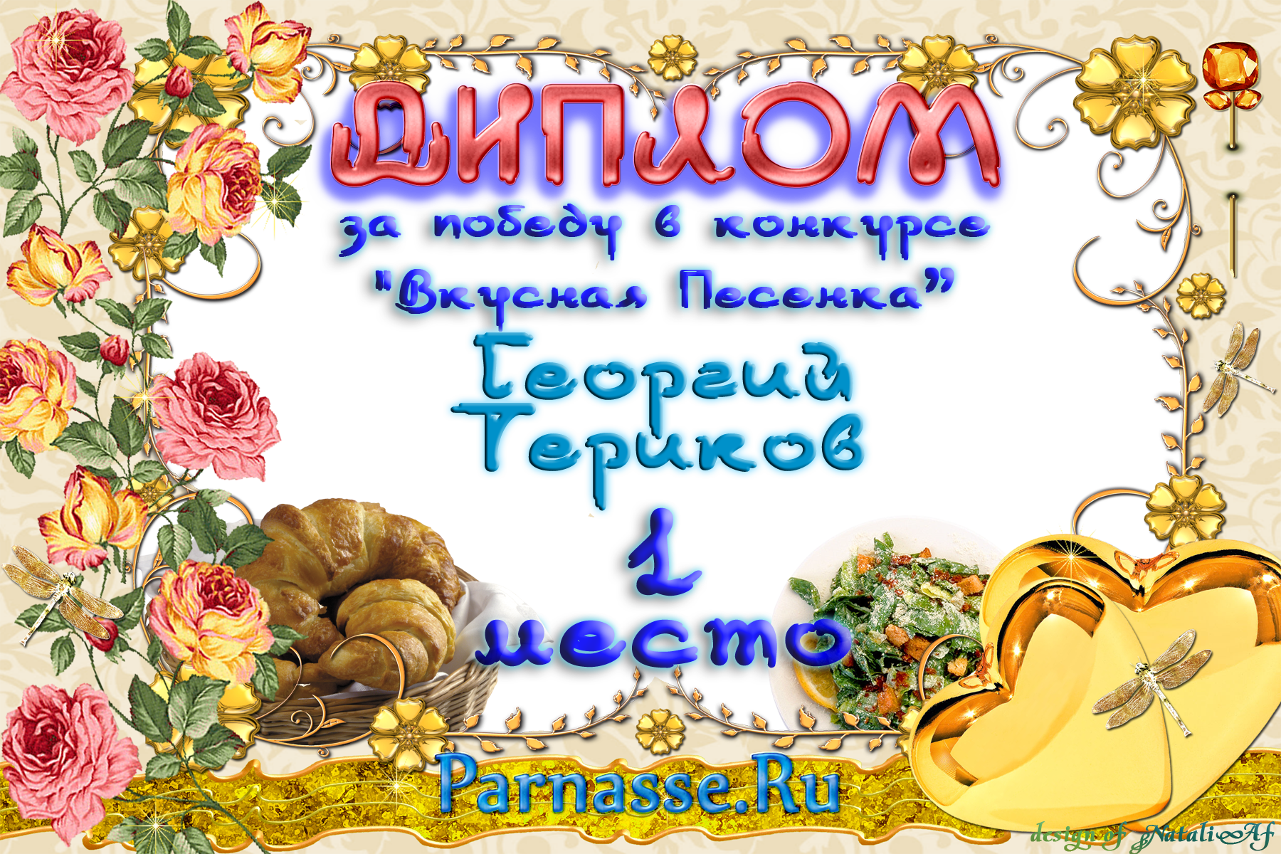 От всего сердца поздравляем Вас с блестящей ПОБЕДОЙ в номинации «Вкусная ПЕСЕНКА», во "Вкусном конкурсе"