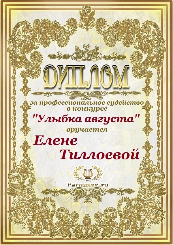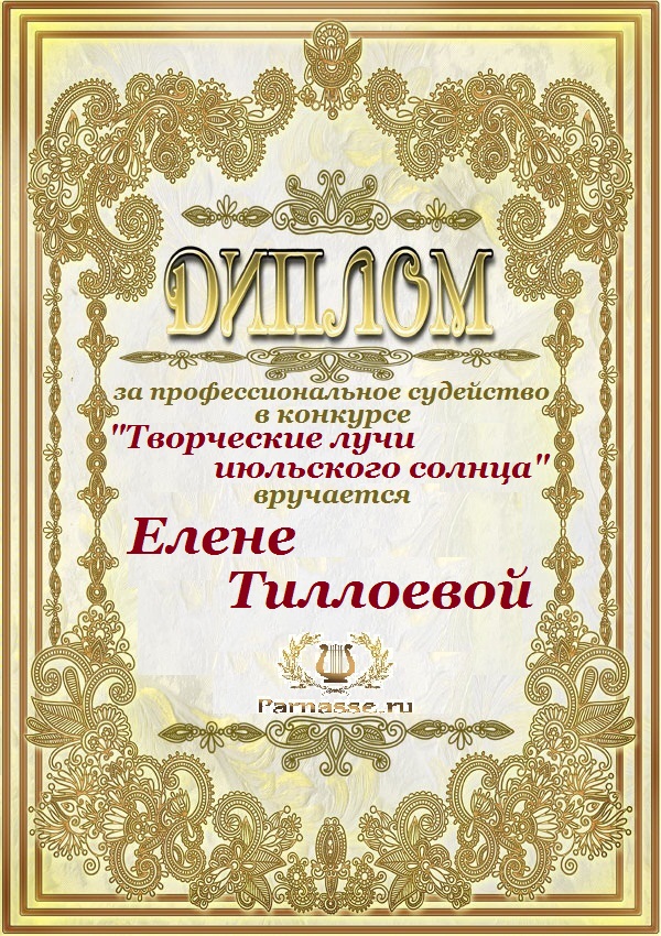 VIP Редактор Парнаса, Модератор, Главный Судья Поэтического Турнира Поэзии, Ведущий Блиц-Конкурса "Золотая ЛитМолния", Главный Судья серии конкурсов про Зиму, Весну, Лето, Осень и многих-многих др.