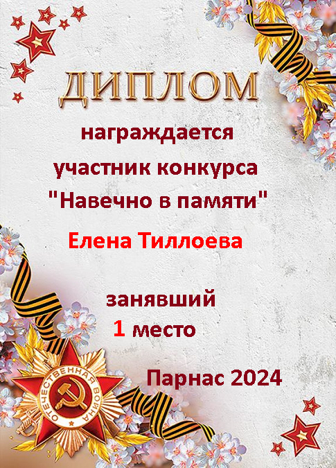 Первое место по решению Администрации и Главного судьи конкурса "Навечно в памяти"