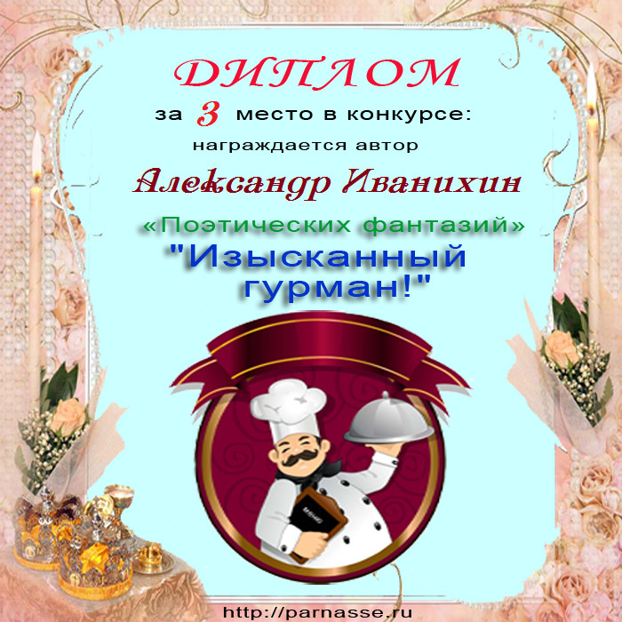 Победителю конкурса "Изысканный гурман!"по судейскому голосованию за работу №6