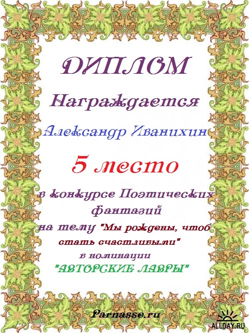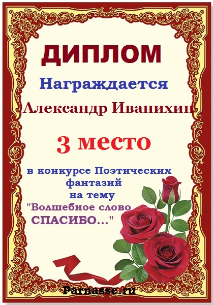 за 3 место в конкурсе Поэтических фантазий "Зимы волшебное убранство в номинации "Авторские лавры"ПОЗДРАВЛЯЕМ!
