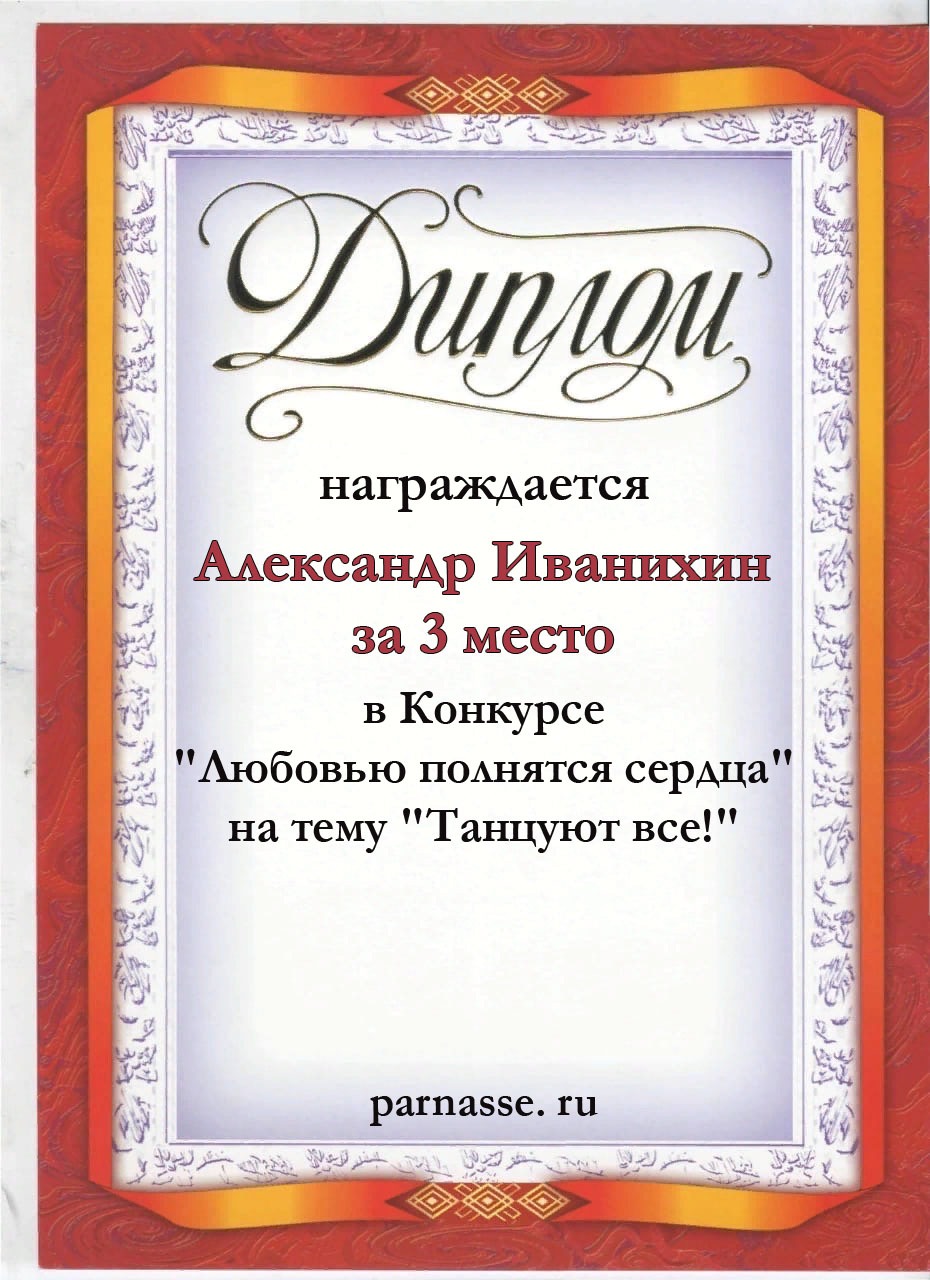 Диплом за 3 место в конкурсе "Дню всех Влюблённых посвящая"