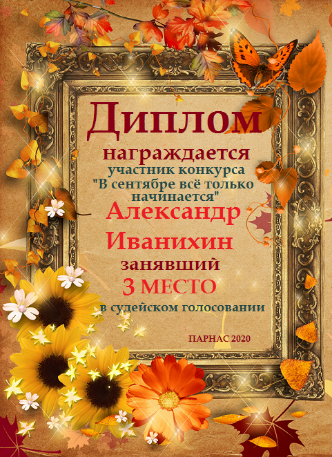 Третье место по итогам конкурса " Расцветает осень в сентябре", судейское голосование. Поздравляем с прекрасной победой!