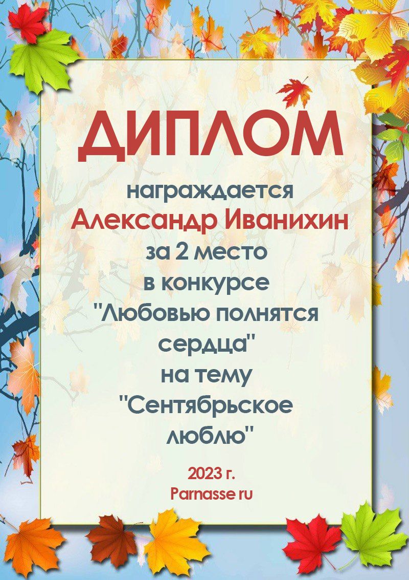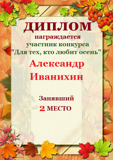 Второе место по итогам литературного конкурса – триады: «Для тех, кто любит осень». Поздравляем с прекрасной победой!