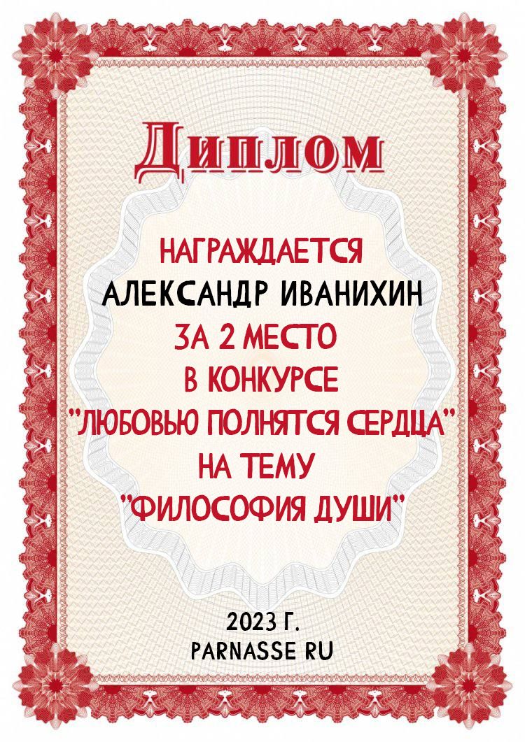 2 место в конкурсе Любовью полнятся сердца на тему "Философия души". Поздравляем!
