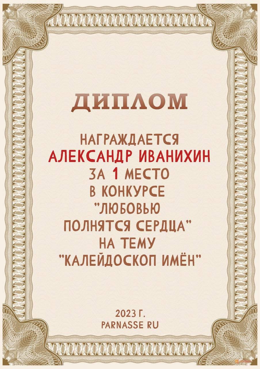 1 место в конкурсе"Любовью полнятся сердца" на тему " Калейдоскоп имён" .Поздравляем!