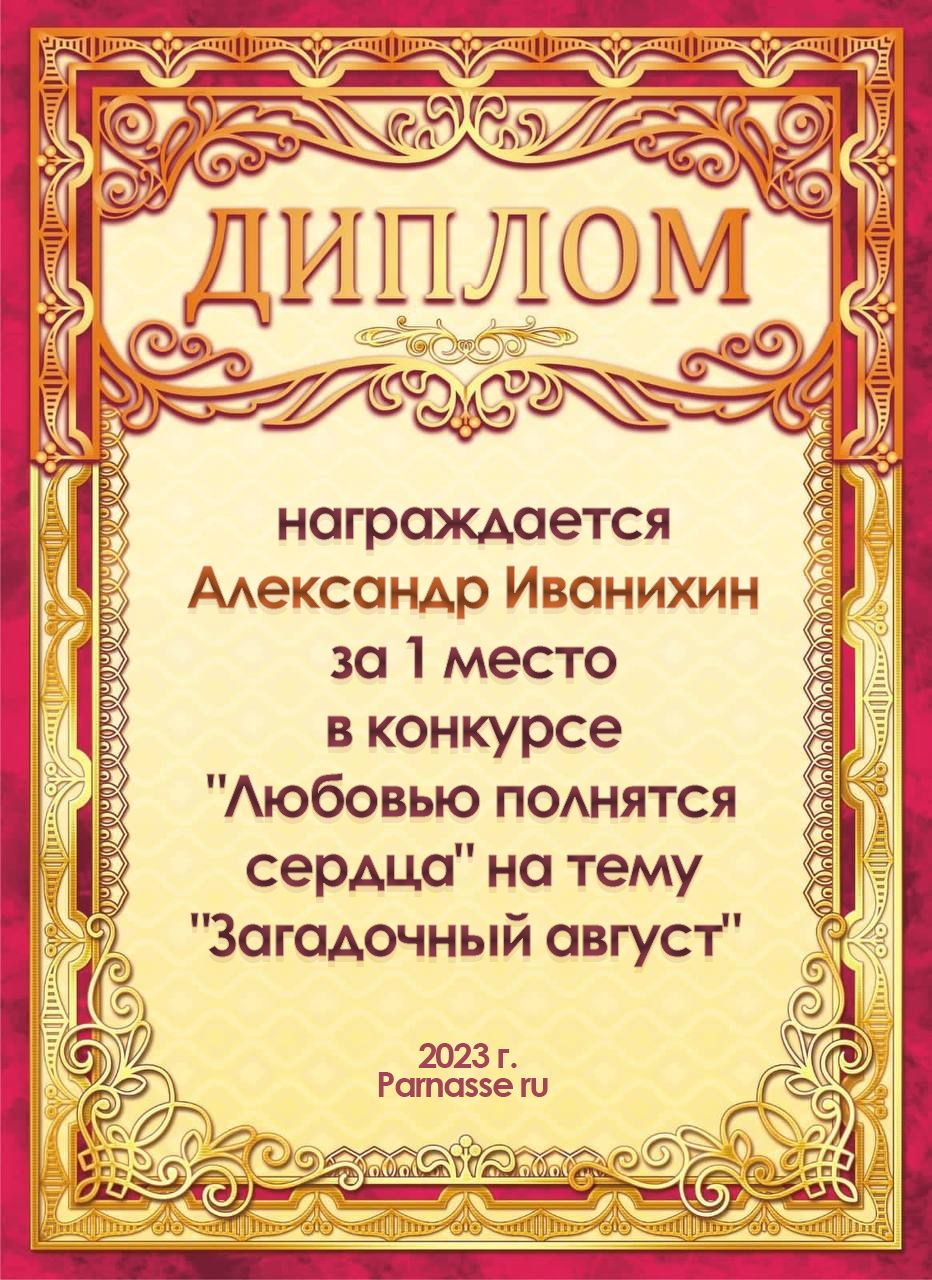 1 место в конкурсе "Любовью полнятся сердца" на тему "Загадочный август" (загадки для детей). Поздравляем!