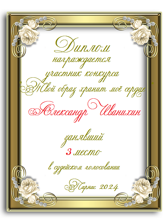 Третье место по итогам конкурса "Твой образ хранит моё сердце"
