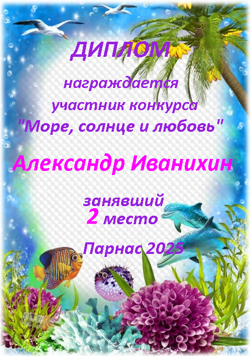Второе место по итогам конкурса "Море, солнце и любовь"