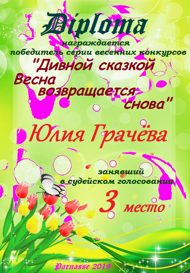 Третье место в серии весенних конкурсов "Дивной сказкой Весна возвращается снова", судейское голосование. Поздравляем с прекрасной победой!