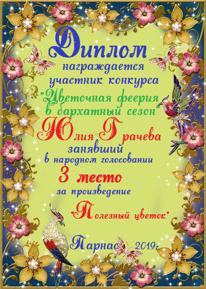 Диплом за 3 место в 142 конкурсе АКРОСТИХА (Альтернатива)! ПОЗДРАВЛЯЮ!