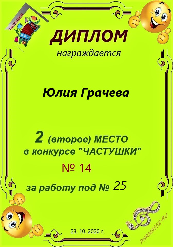 второе место в конкурсе "ЧАСТУШКИ" № 14 за работу под № 25