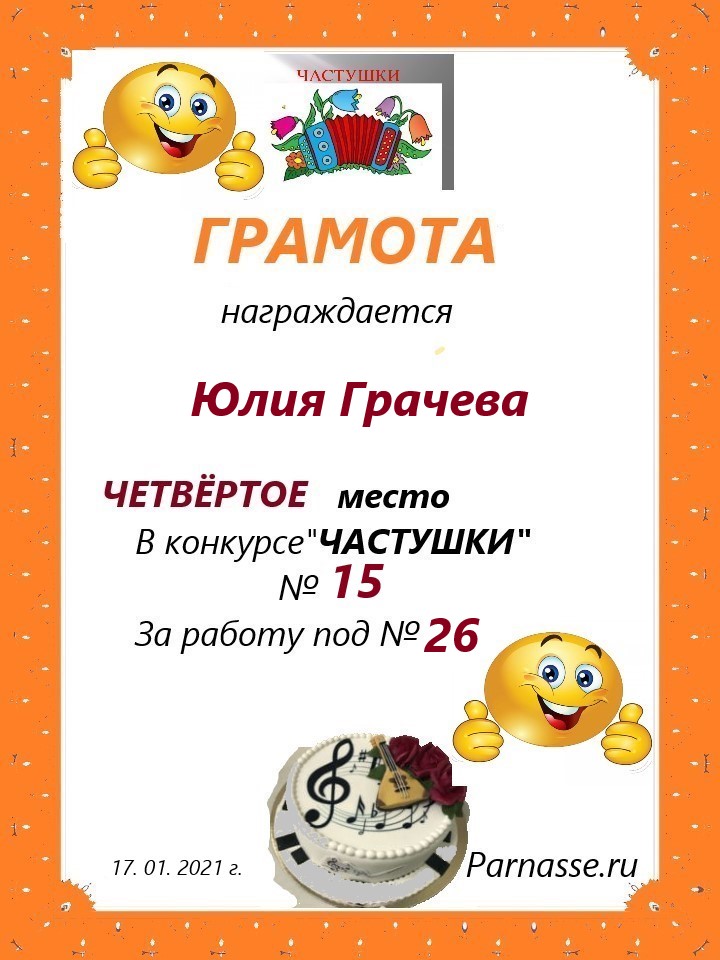 4 место в конкурсе "ЧАСТУШКИ" 15.., за работу под № 26