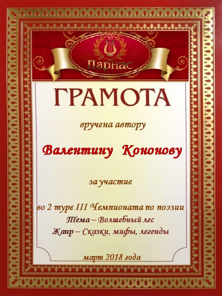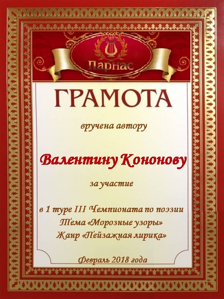 За участие в Конкурсе "Ода Февралю" в рамках проекта "Царские Забавы"