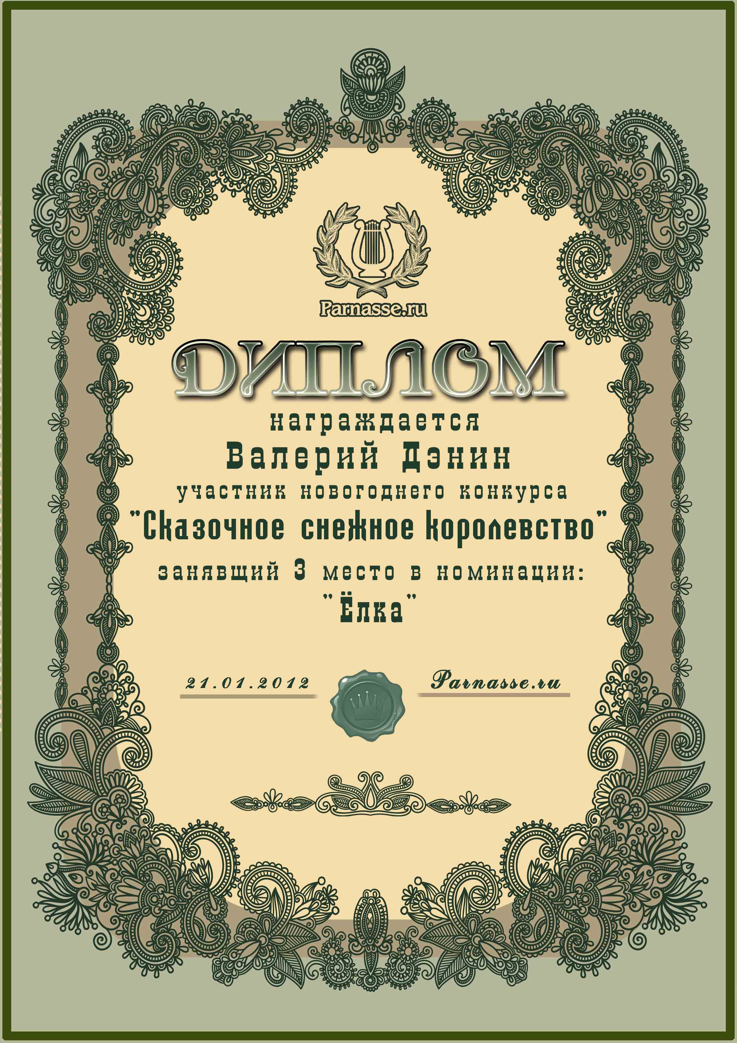 Диплом за 3 место в конкурсе "Сказочное снежное королевство!"