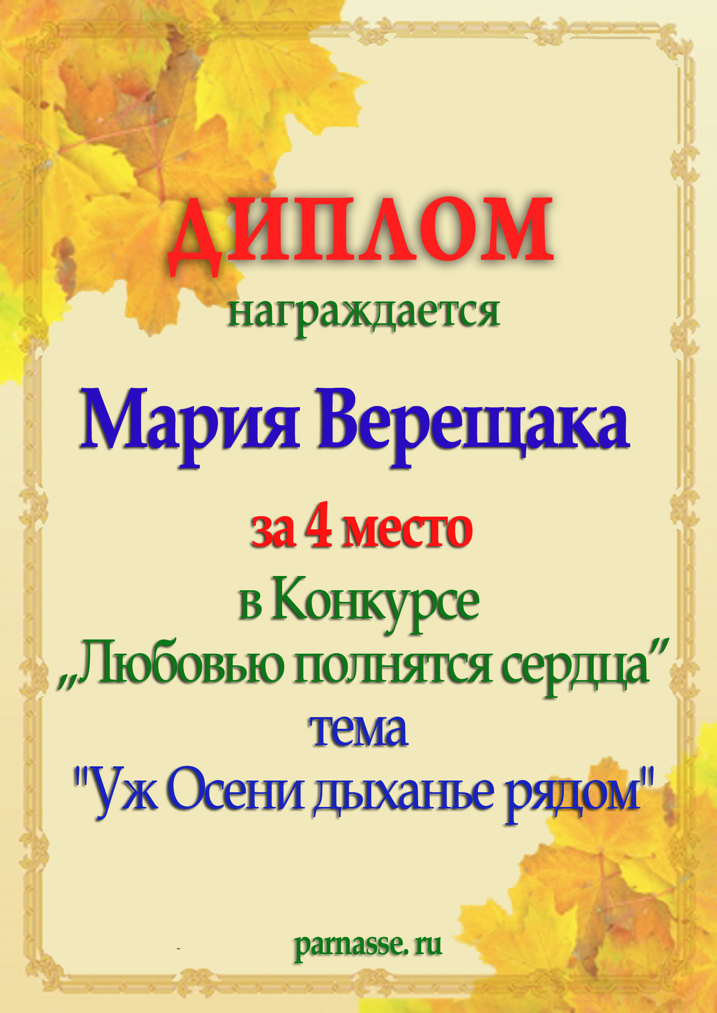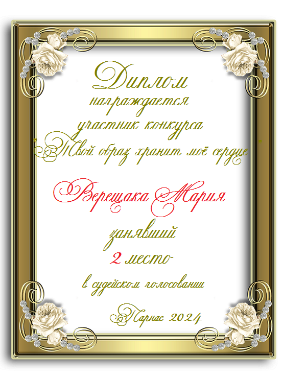 Второе место по итогам конкурса "Твой образ хранит моё сердце"