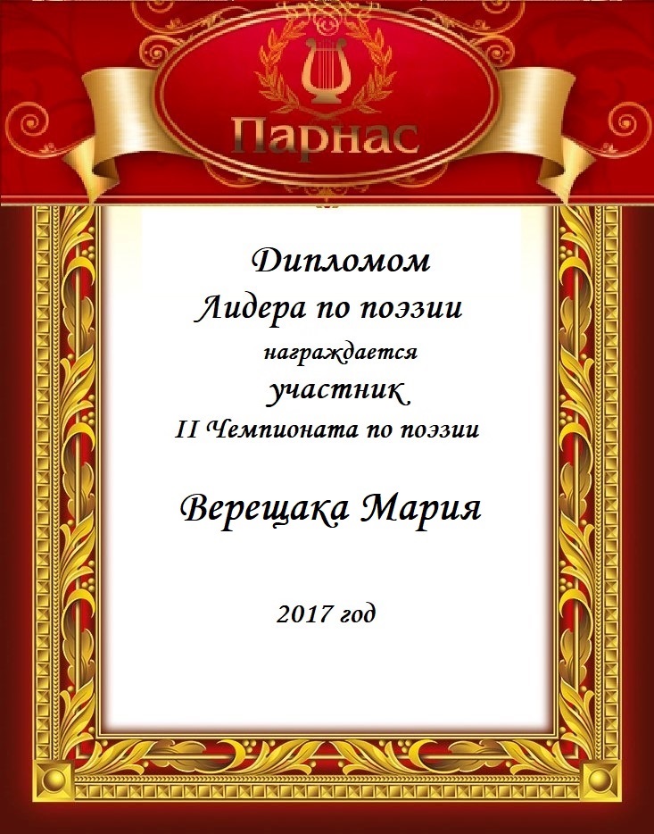 Поздравляем с получением звания Лидер по поэзии!