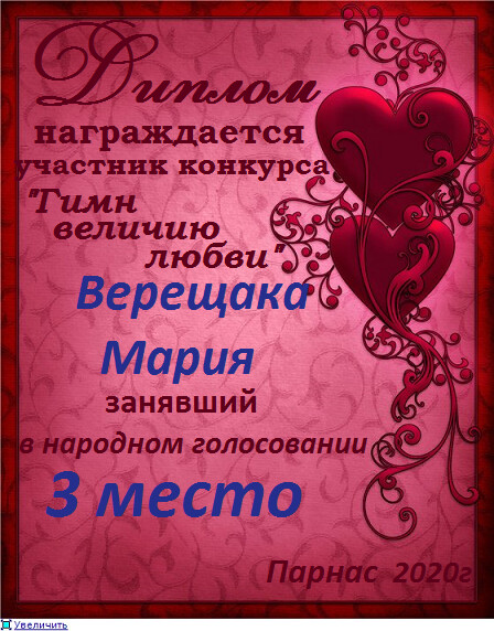 Диплом за 3 место в конкурсе "Дню всех Влюблённых посвящая"