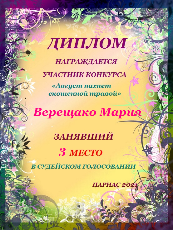 Третье место в судейском голосовании по итогам конкурса «Август пахнет скошенной травой»