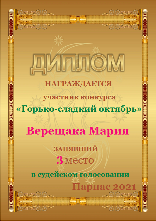 Третье место в судейском голосовании по итогам конкурса «Горько-сладкий октябрь»