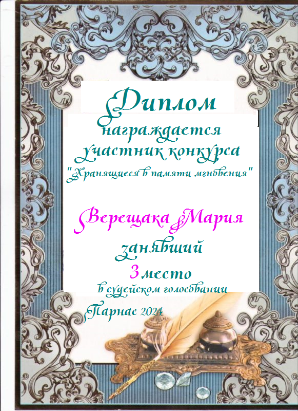 Третье место в судейском голосовании по итогам конкурса "Хранящиеся в памяти мгновения"