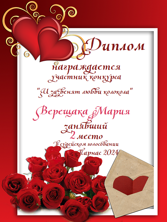 Второе место по итогам конкурса "Когда приходит первая любовь"