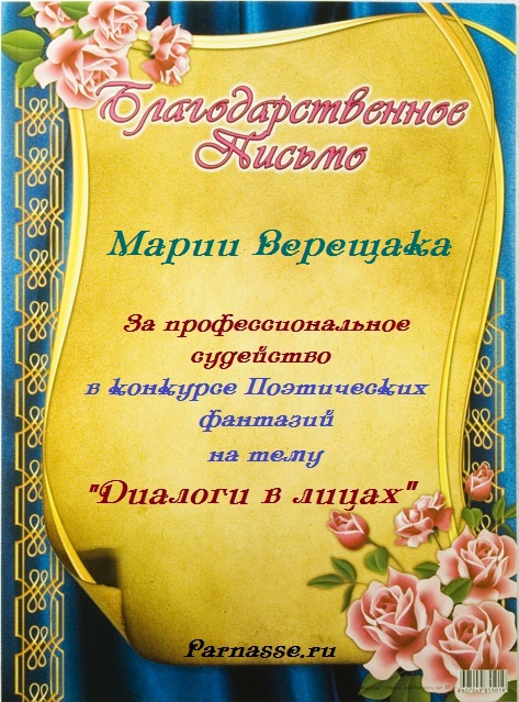 За участие в Пятом Поэтическом Турнире