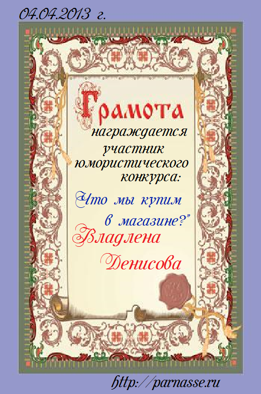 Похвальная грамота за 4 место в конкурсе лимериков № 39+ (29.07.2013 г.)