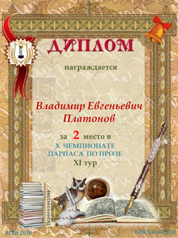 Поздравляю с занятым 2 местом в X Чемпионате Парнаса по Прозе - 11 тур!