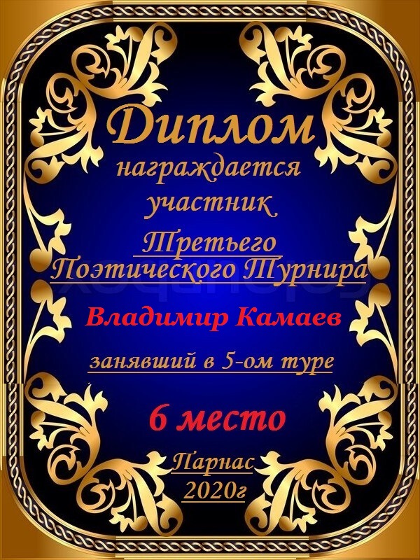 Третье место по итогам 5-го тура Пятого Поэтического Турнира