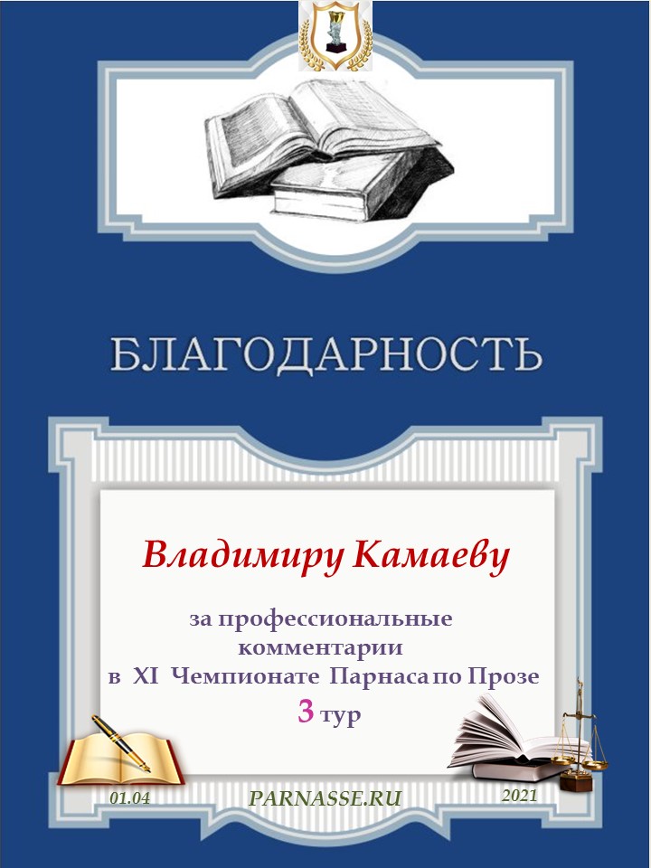 Большое спасибо за профессиональные и объективные комментарии в 1 туре XI Чемпионата Парнаса по Прозе!
