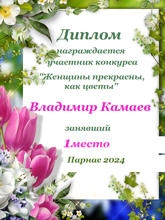 Первое место по решению Администрации и Главного судьи конкурса "Женщины прекрасны, как цветы