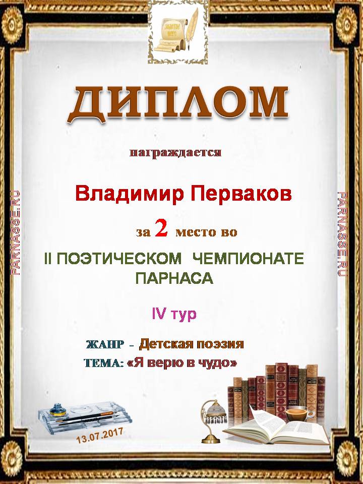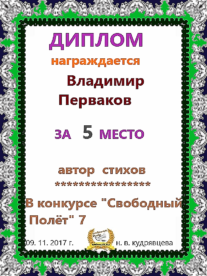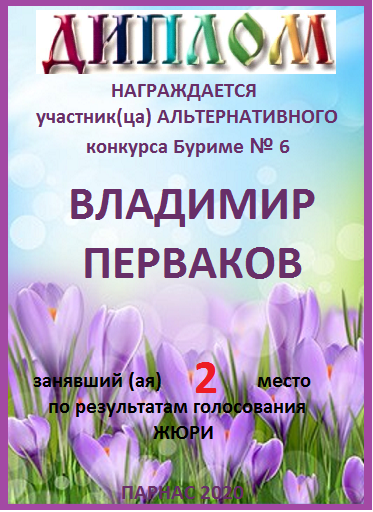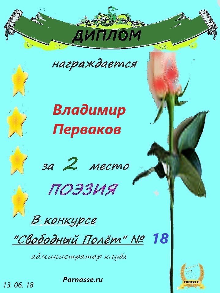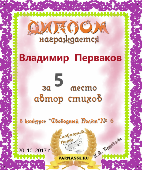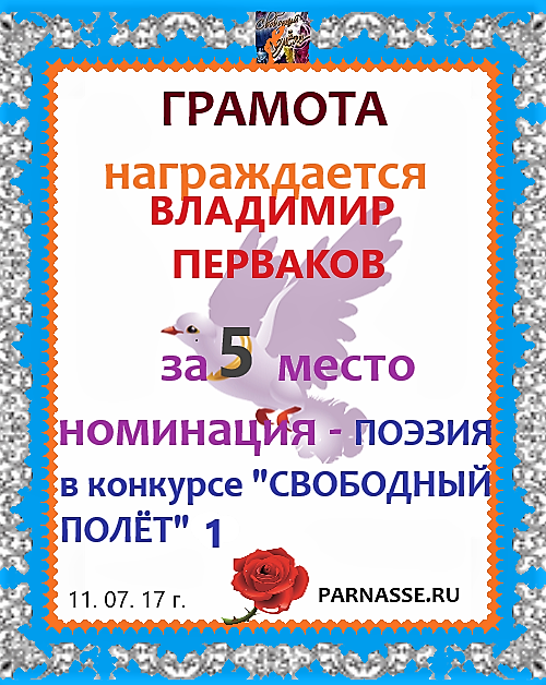 за 2 место в конкурсе "Свободный Полёт" № 36 ПОЭЗИЯ
