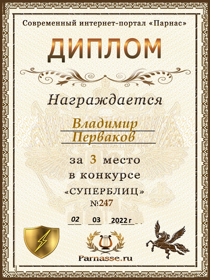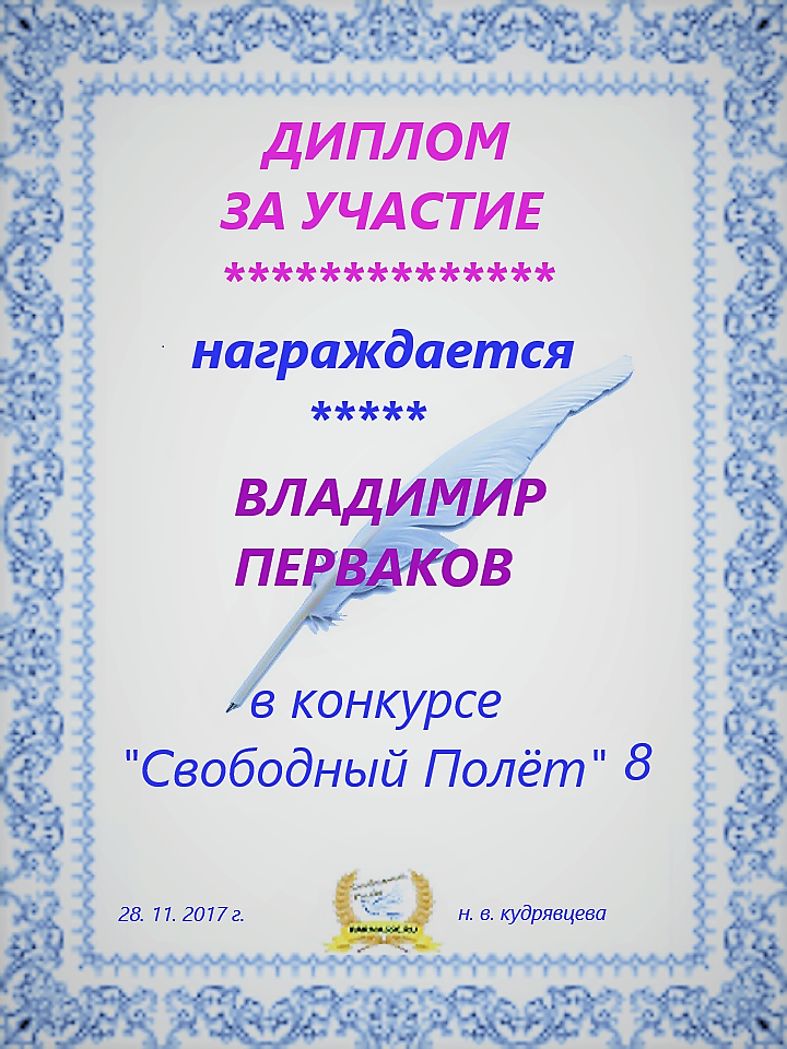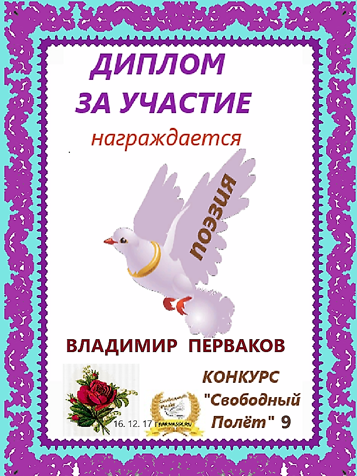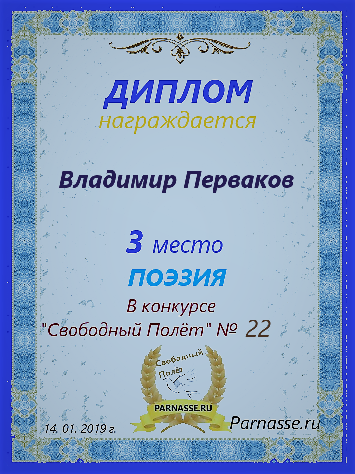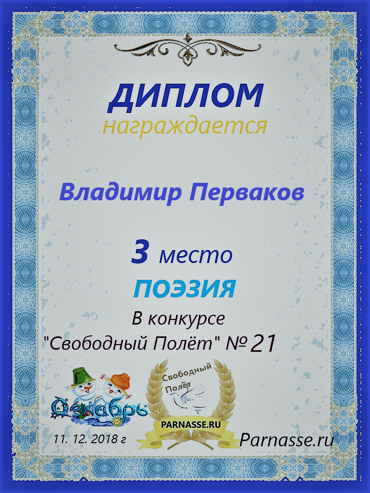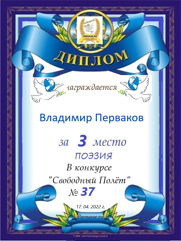 за 3 место в конкурсе "Свободный Полёт" № 37 ПОЭЗИЯ