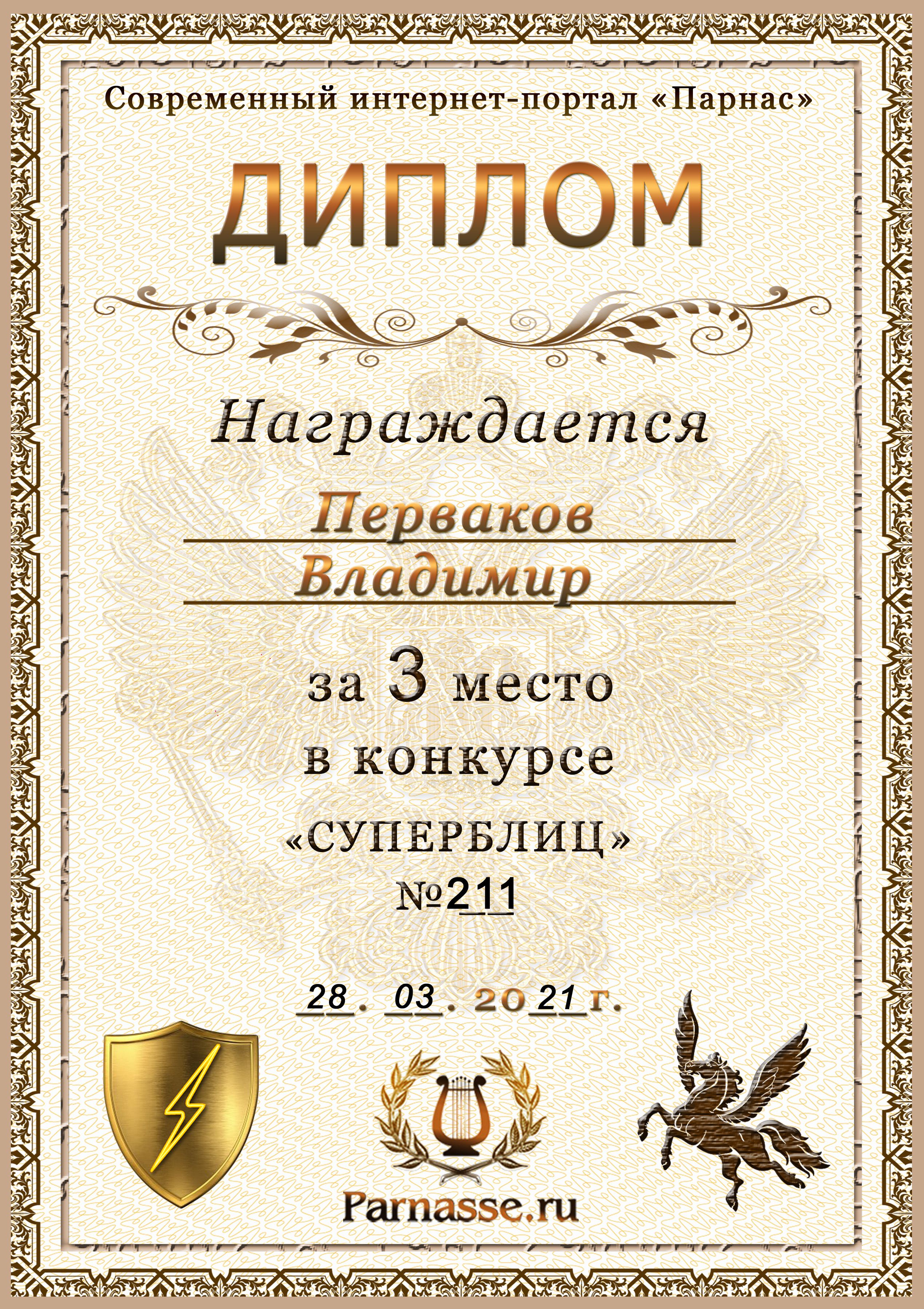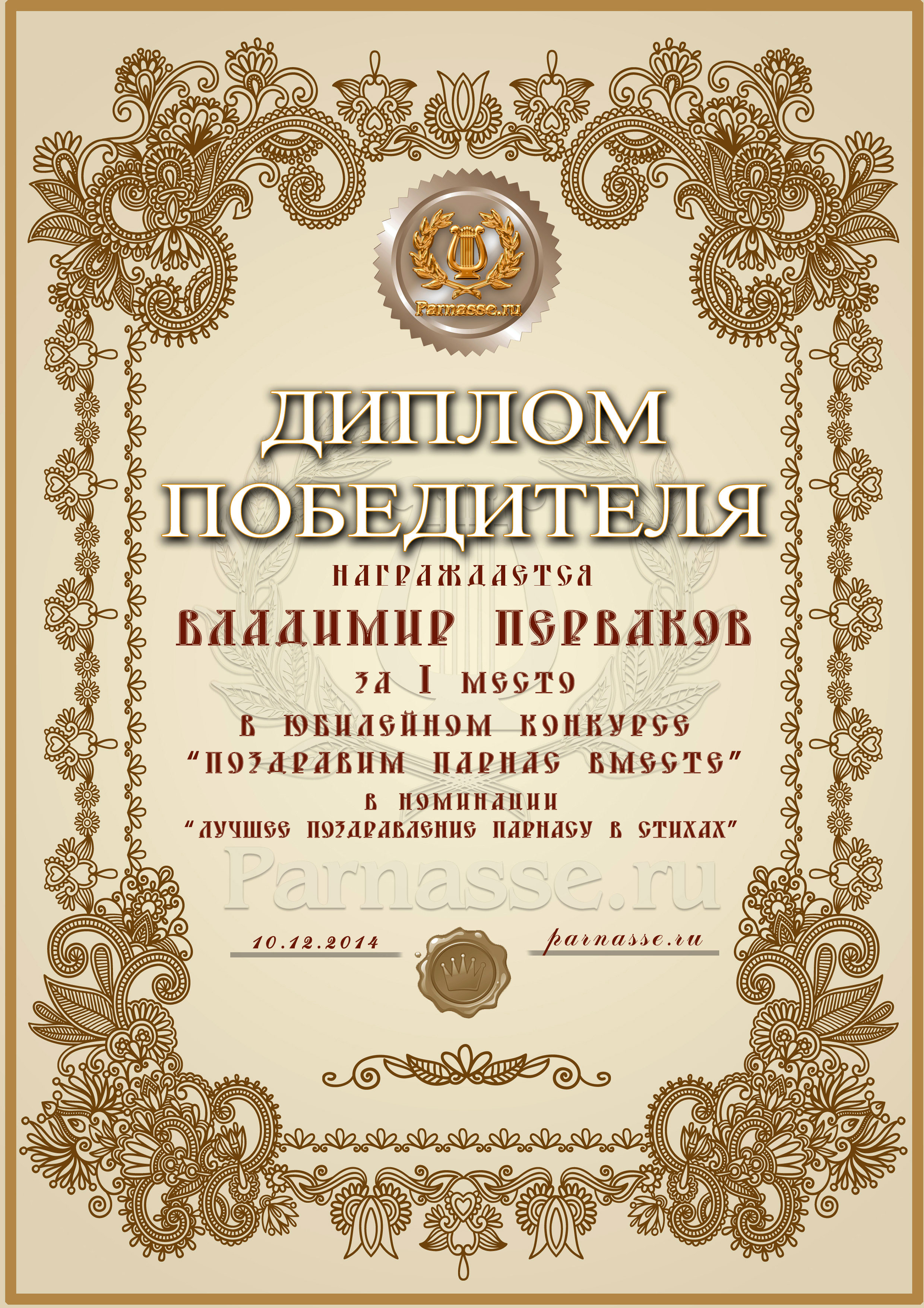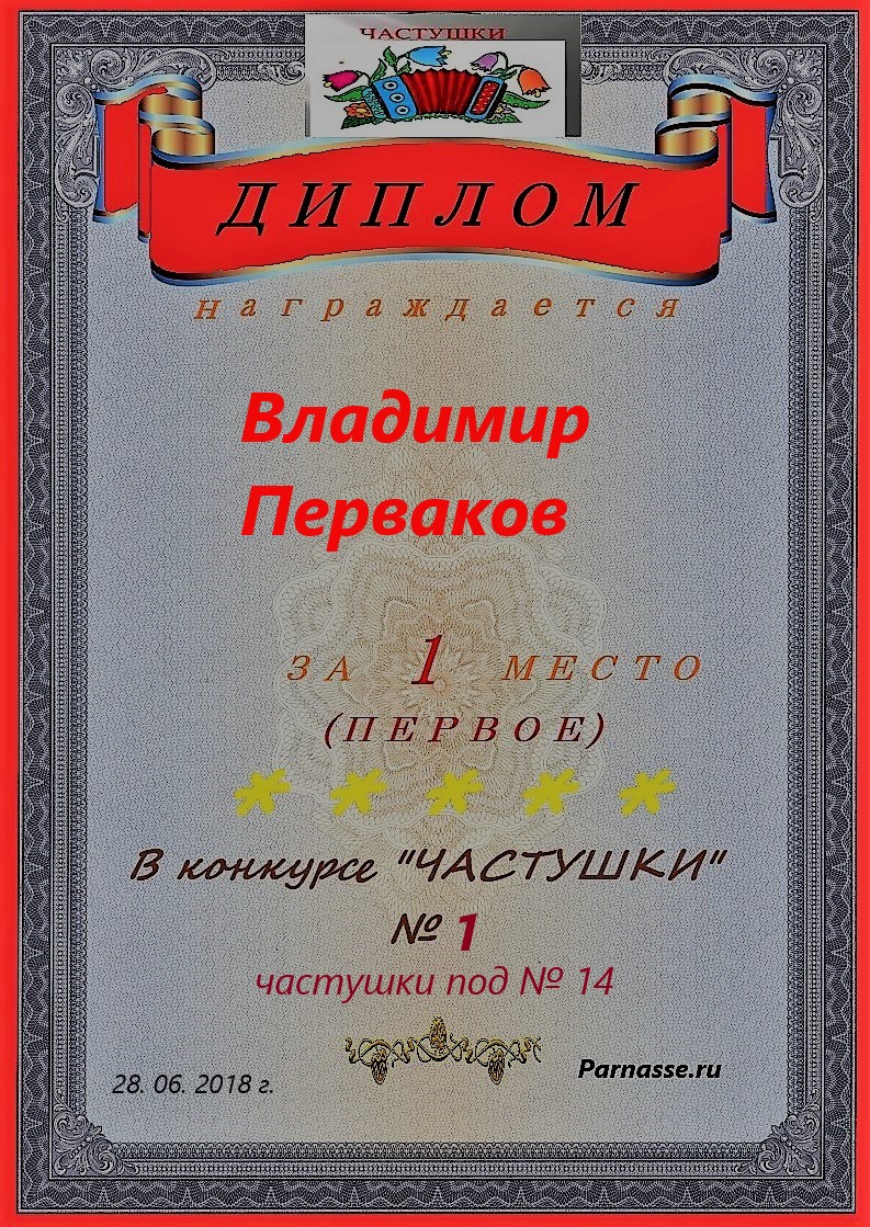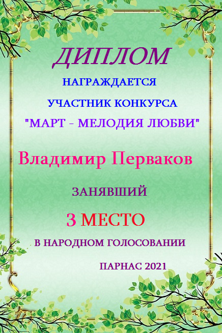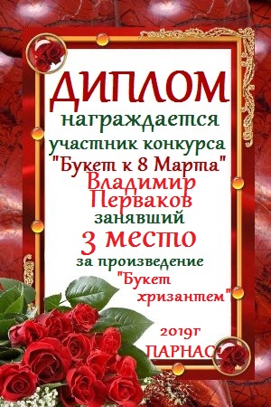 Диплом за 1 место в праздничном конкурсе "Поздравим Парнас с трёхлетием вместе!"