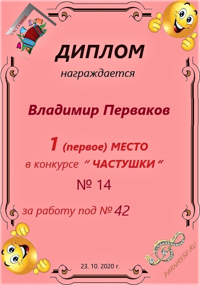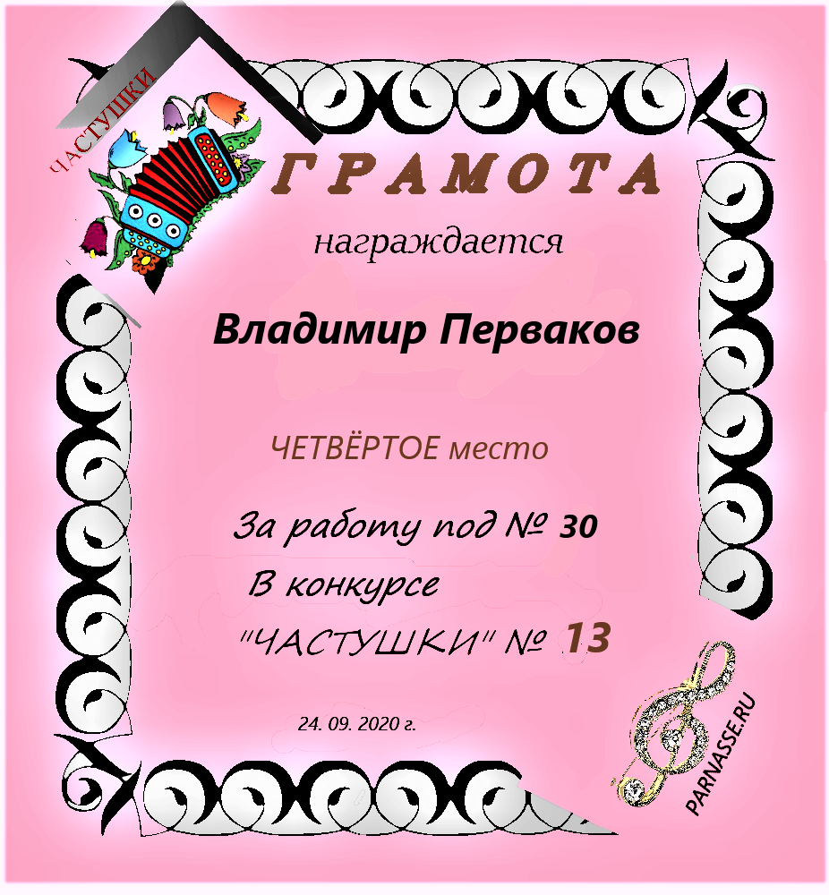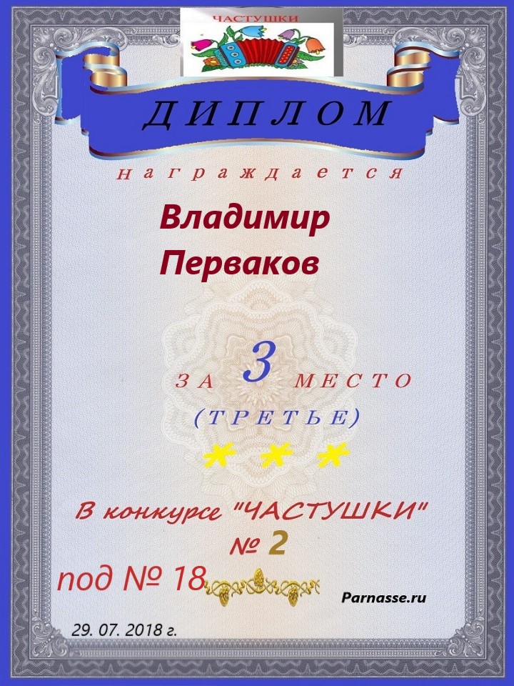 3 место в конкурсе"ЧАСТУШКИ" № 21...за работу под № 28