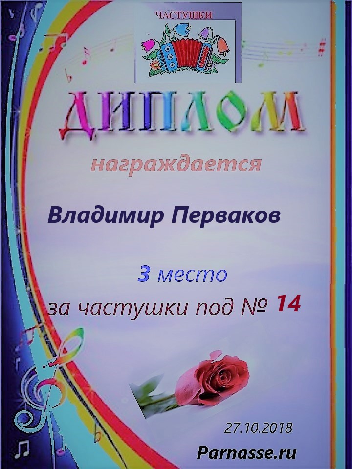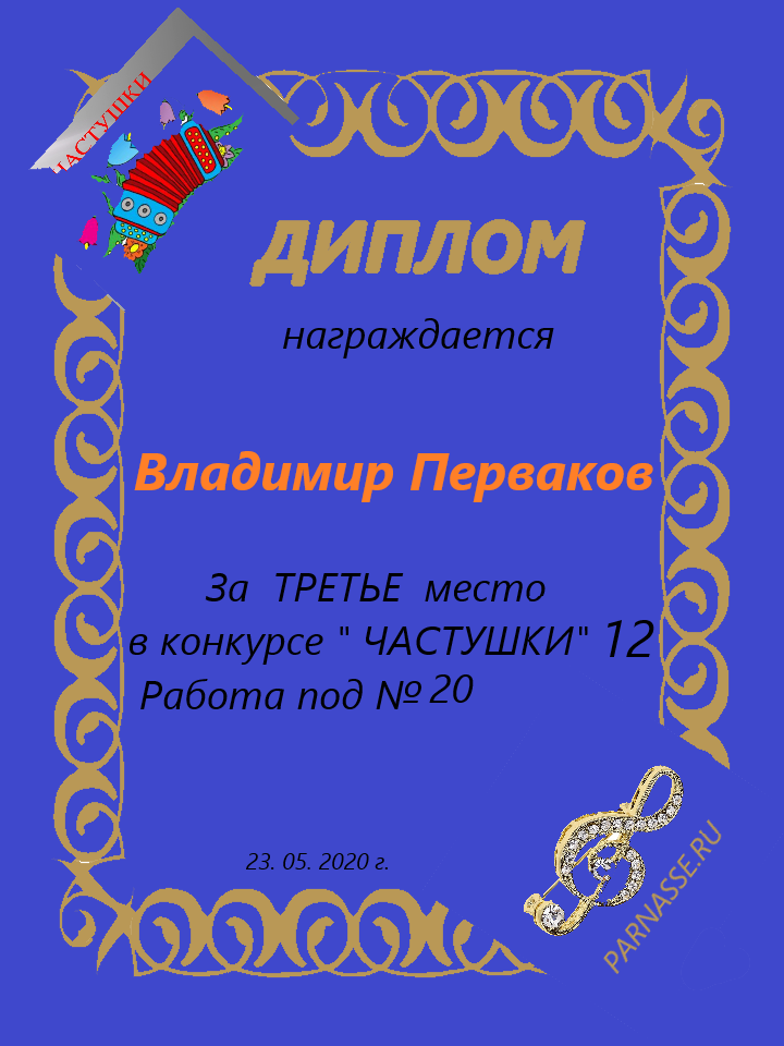 3 место в конкурсе"ЧАСТУШКИ" № 21...за работу под № 27