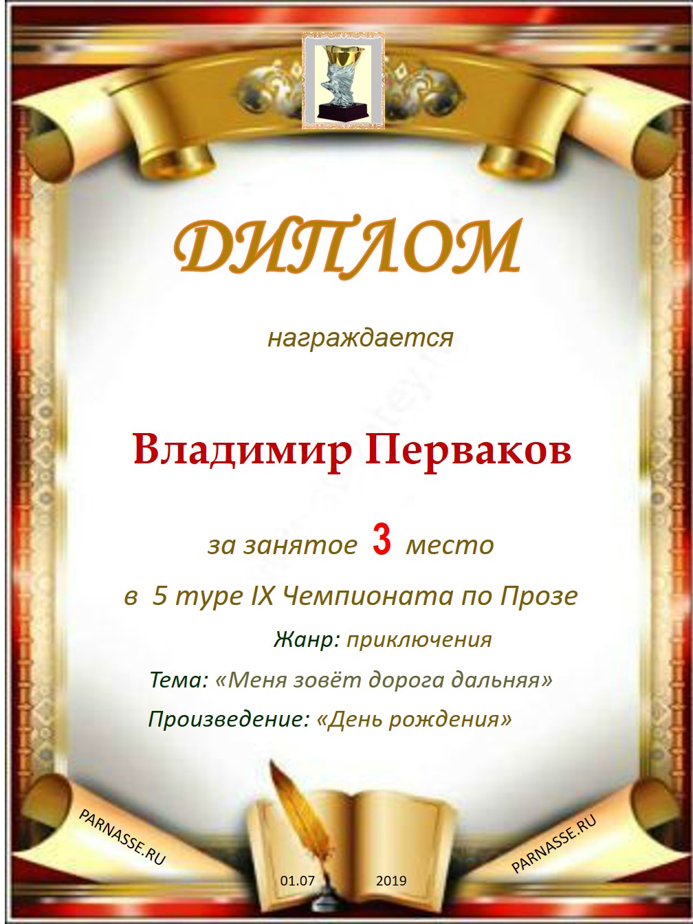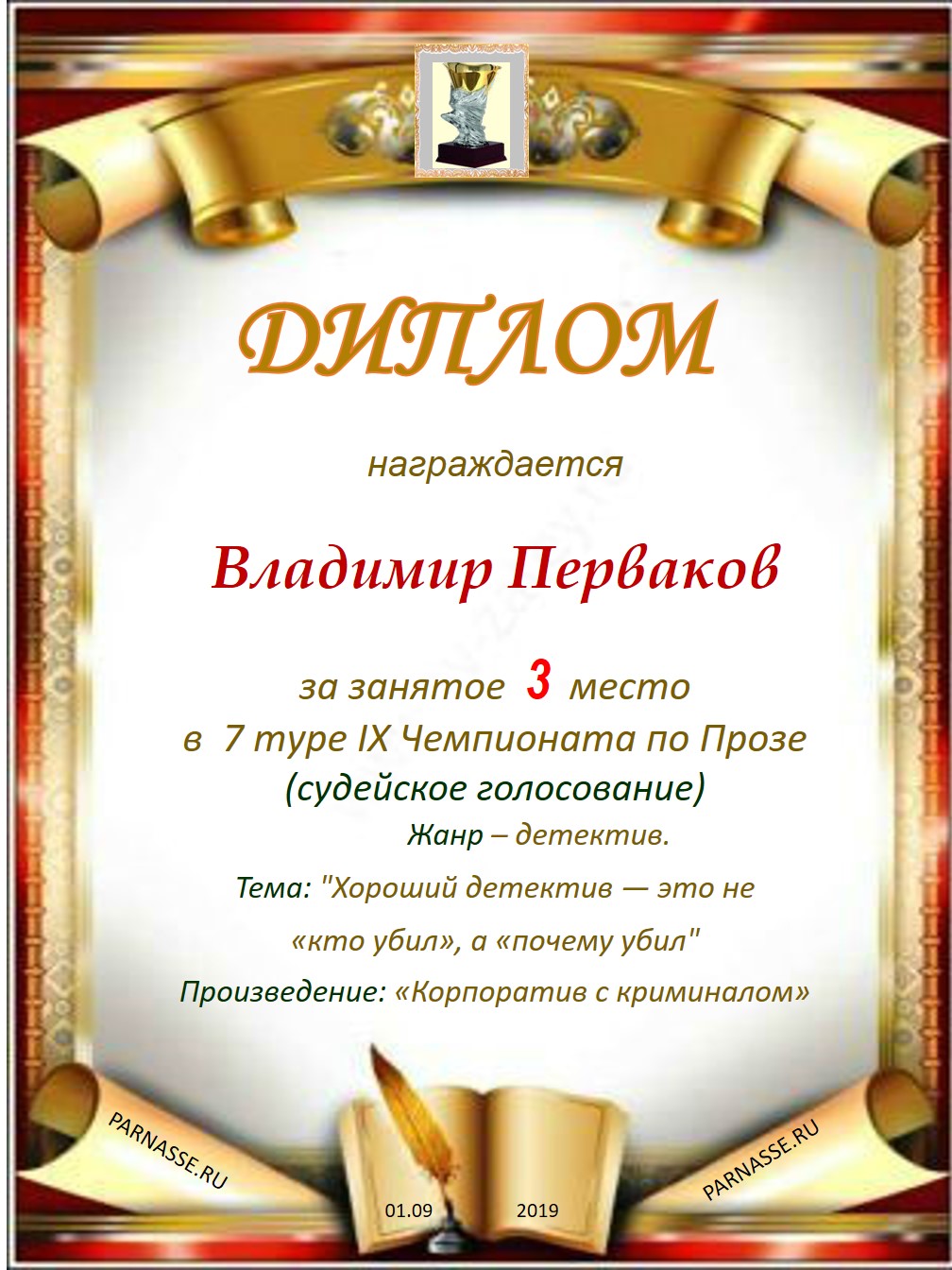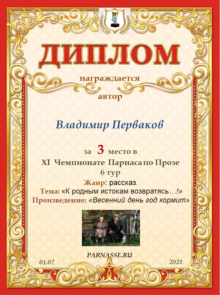 Поздравляю с занятым 3 местом в 7 туре IX Чемпионата Парнаса по Прозе – судейское голосование!