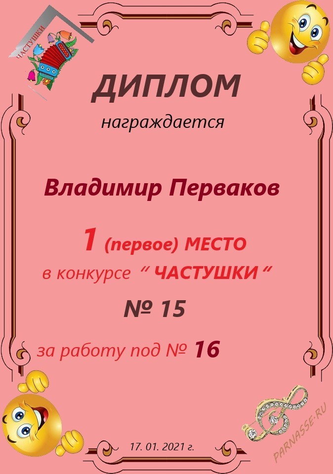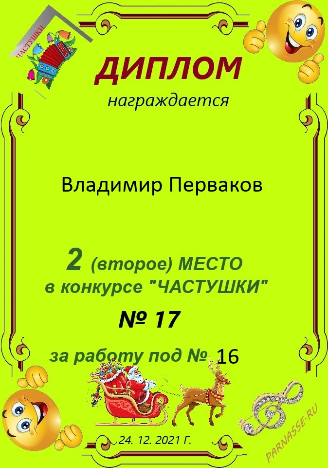 2 место в конкурсе "ЧАСТУШКИ" 17, за работу под № 16