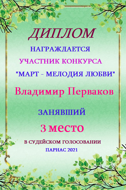Третье место в судейском голосовании по итогам конкурса «Весны прекрасные мгновения»