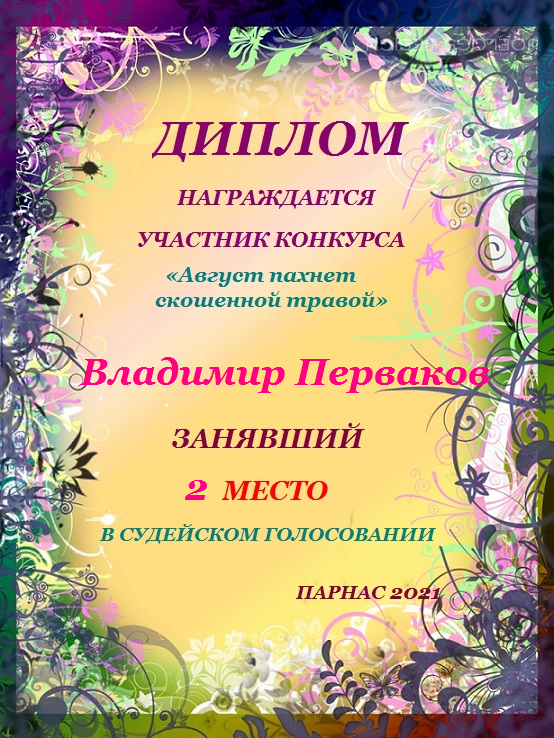 Второе место в судейском голосовании по итогам конкурса «Август пахнет скошенной травой»