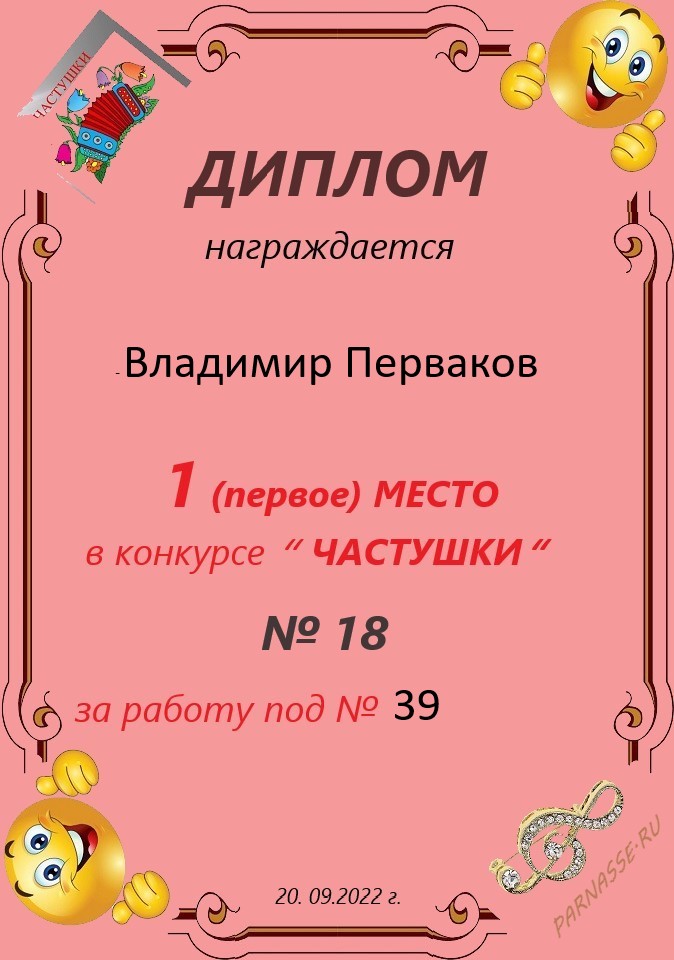 в конкурсе "ЧАСТУШКИ" № 18...за работу под № 39