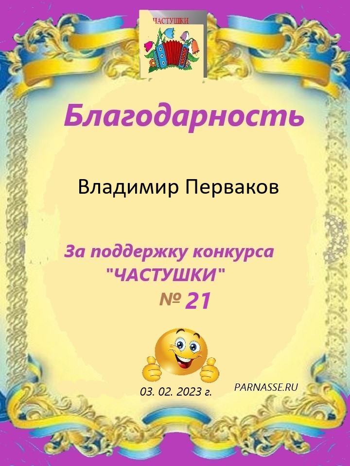 За поддержку конкурса"ЧАСТУШКИ" № 21