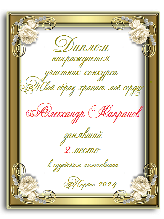 Второе место по итогам конкурса "Твой образ хранит моё сердце"