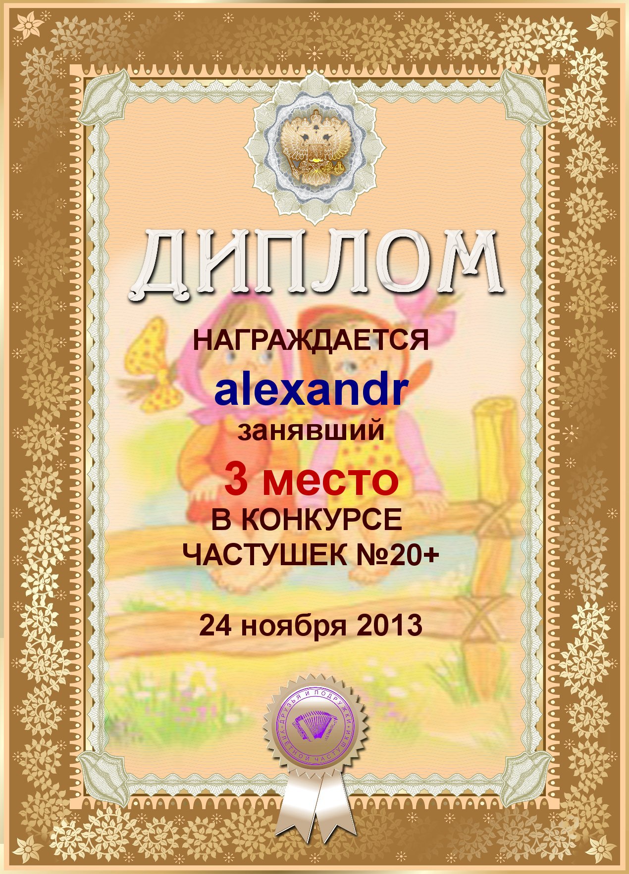 ![]() ![]() ![]() ПЯТОЕ место в конкурсе «Ласковая Моя!»