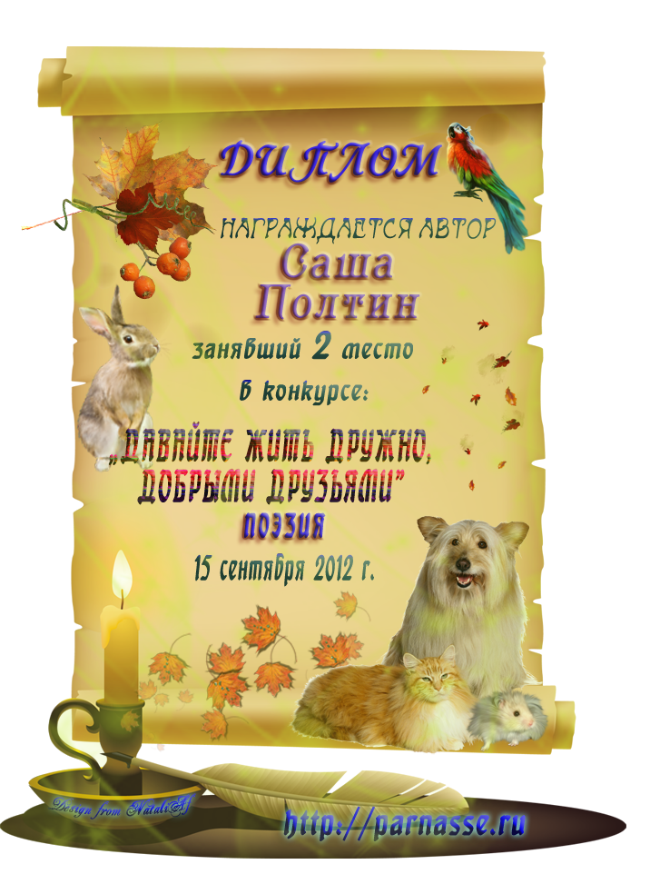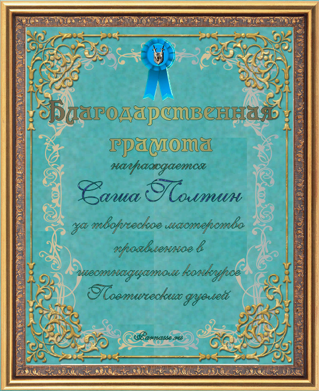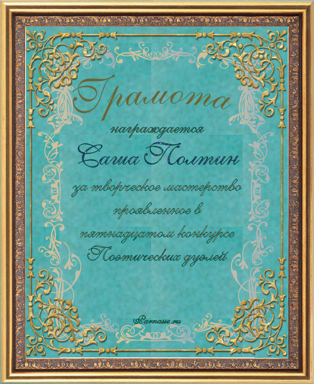 Диплом за 3-е место в номинации "Лучшая дуэль" по итогам общего голосования в седьмом конкурсе поэтических дуэлей (стр. 16)