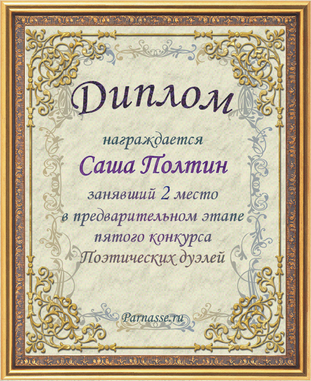 Диплом за второе место в предварительном этапе пятого конкурса поэтических дуэлей