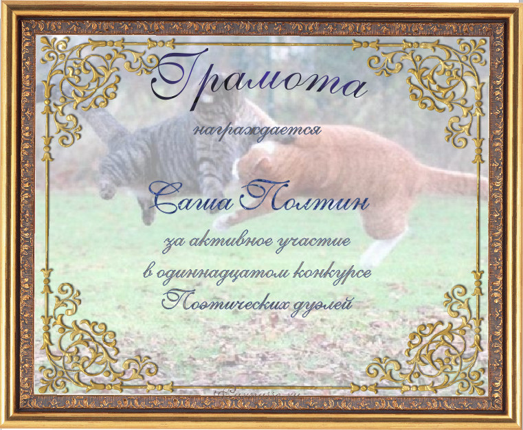 Почётная грамота за активное участие в одиннадцатом конкурсе поэтических дуэлей